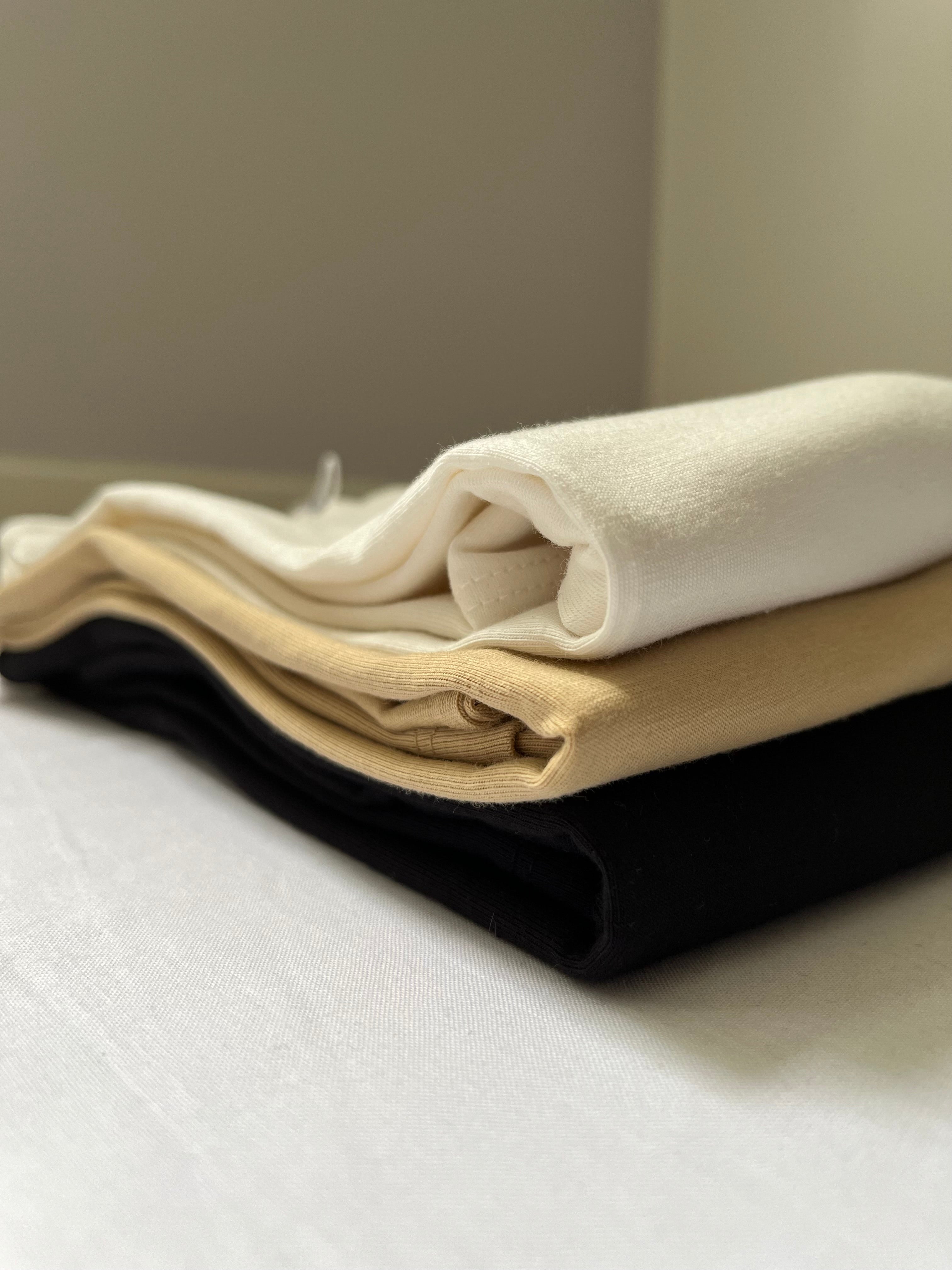Ce pack rassemble les couleurs neutres à avoir dans son dressing : Noir, Blanc, Camel clair.